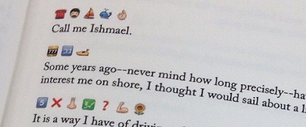 Il primo romanzo a essere tradotto in emoji è stato il capolavoro di Hermann Melville, Mobi Dick che, un po’ prevedibilmente, è diventato Emoji Dick, ad opera di Fred Benenson.